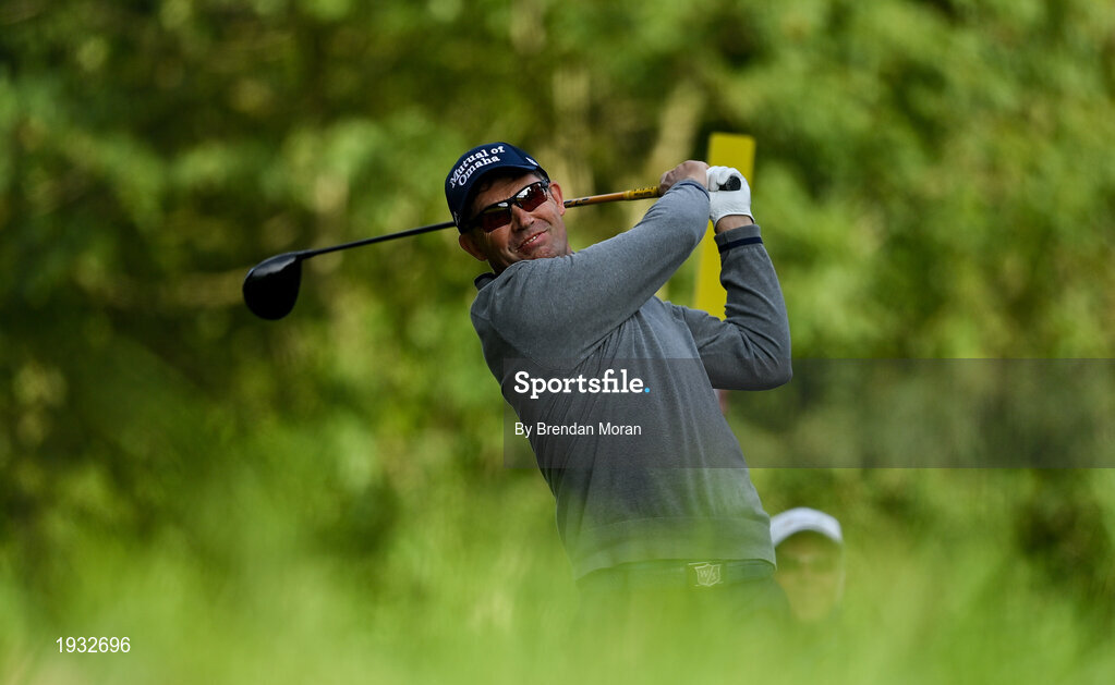 24 September 2020; Padraig Harrington of Ireland watches his drive on the 10th tee box during day one of the Dubai Duty Free Irish Open Golf Championship at Galgorm Spa & Golf Resort in Ballymena, Antrim. Photo by Brendan Moran/Sportsfile