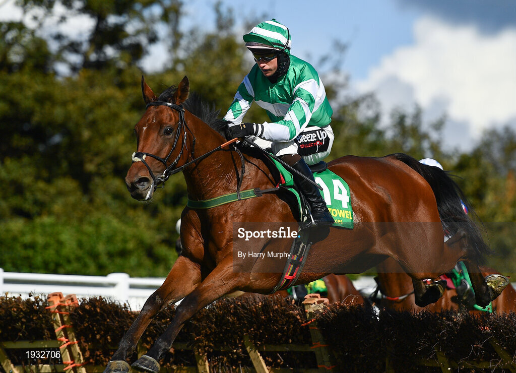 23 September 2020; Sonny John, with JJ Slevin up, jumps the last, first time round, during the Remembering Tommy McGivern Maiden Hurdle at Listowel Racecourse in Kerry. Photo by Harry Murphy/Sportsfile