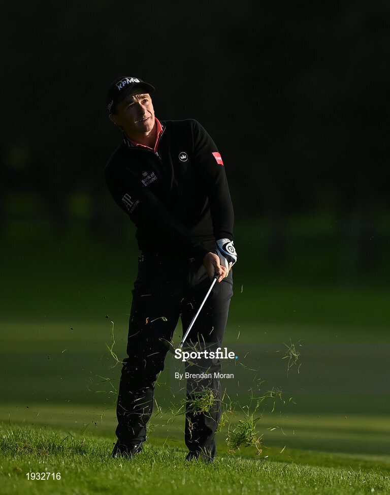 24 September 2020; Paul Dunne of Ireland watches his third shot to the 18th green during day one of the Dubai Duty Free Irish Open Golf Championship at Galgorm Spa & Golf Resort in Ballymena, Antrim. Photo by Brendan Moran/Sportsfile