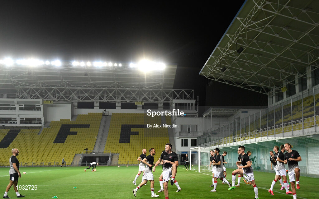 24 September 2020; Dundalk players, including Brian Gartland, warm-up prior to the UEFA Europa League Third Qualifying Round match between FC Sheriff Tiraspol and Dundalk at the Stadionul Sheriff in Tiraspol, Moldova. Photo by Alex Nicodim/Sportsfile