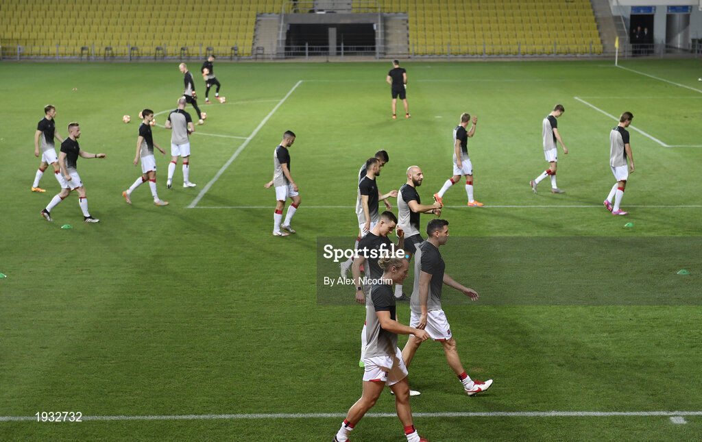24 September 2020; Dundalk players warm-up ahead of the UEFA Europa League Third Qualifying Round match between FC Sheriff Tiraspol and Dundalk at the Stadionul Sheriff in Tiraspol, Moldova. Photo by Alex Nicodim/Sportsfile