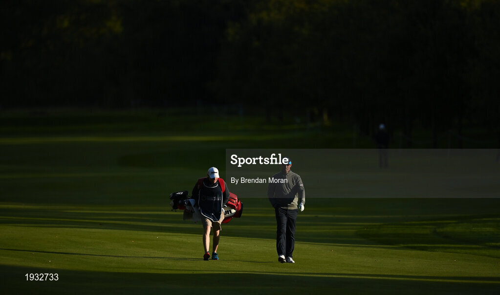 24 September 2020; Padraig Harrington of Ireland walks with his caddie Ronan Flood during day one of the Dubai Duty Free Irish Open Golf Championship at Galgorm Spa & Golf Resort in Ballymena, Antrim. Photo by Brendan Moran/Sportsfile