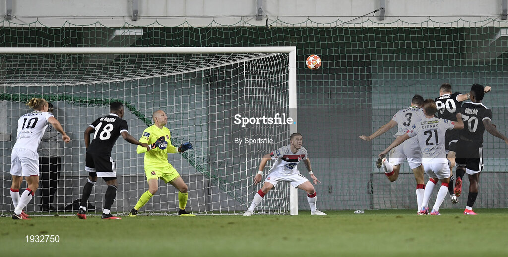 24 September 2020; Veaceslav Posmac of FC Sheriff Tiraspol heads to score his side's first goal during the UEFA Europa League Third Qualifying Round match between FC Sheriff Tiraspol and Dundalk at the Stadionul Sheriff in Tiraspol, Moldova. Photo by Alex Nicodim/Sportsfile