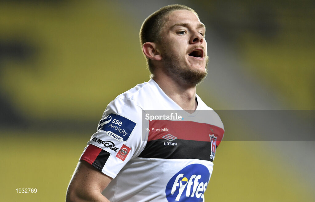 24 September 2020; Sean Murray of Dundalk celebrates after scoring his side's first goal during the UEFA Europa League Third Qualifying Round match between FC Sheriff Tiraspol and Dundalk at the Stadionul Sheriff in Tiraspol, Moldova. Photo by Alex Nicodim/Sportsfile