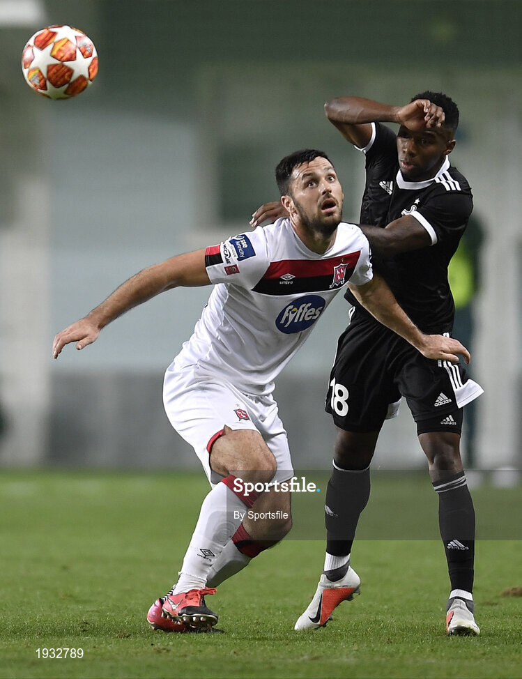 24 September 2020; Patrick Hoban of Dundalk in action against William Parra of FC Sheriff Tiraspol during the UEFA Europa League Third Qualifying Round match between FC Sheriff Tiraspol and Dundalk at the Stadionul Sheriff in Tiraspol, Moldova. Photo by Alex Nicodim/Sportsfile