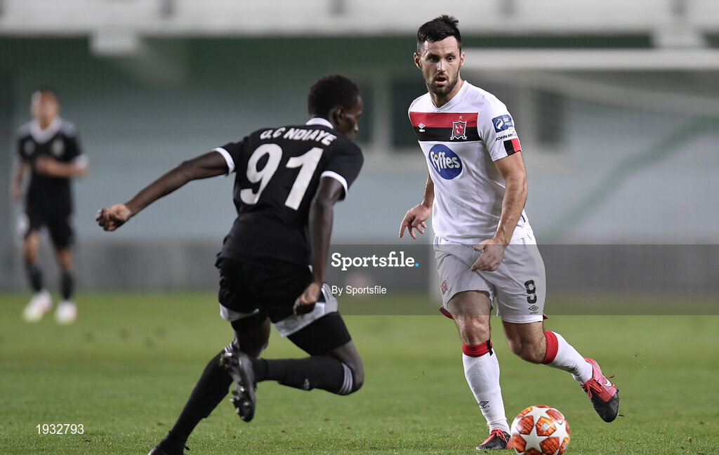 24 September 2020; Patrick Hoban of Dundalk in action against Ousmane N'Diaye of FC Sheriff Tiraspol during the UEFA Europa League Third Qualifying Round match between FC Sheriff Tiraspol and Dundalk at the Stadionul Sheriff in Tiraspol, Moldova. Photo by Alex Nicodim/Sportsfile