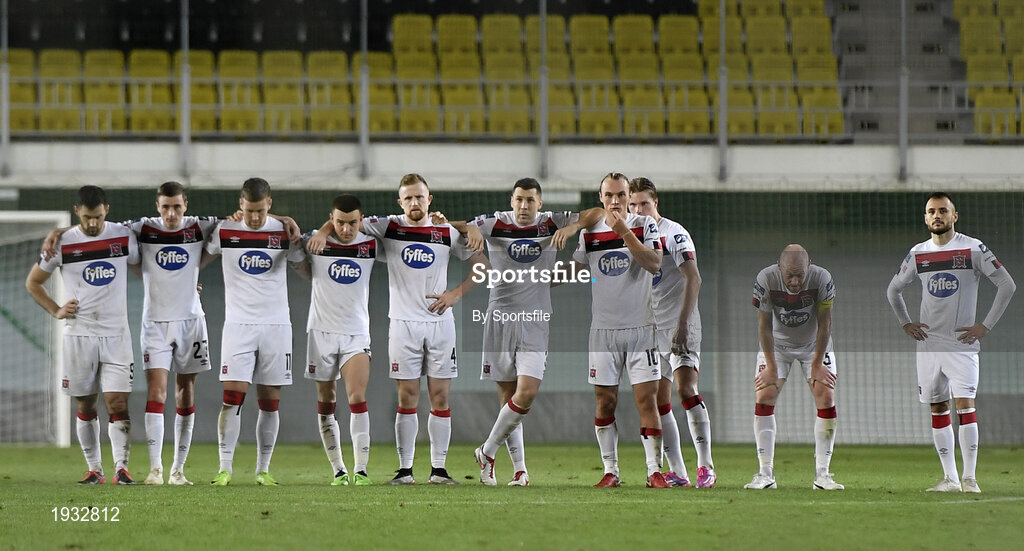 24 September 2020; Dundalk players during the penalty shoot out during the UEFA Europa League Third Qualifying Round match between FC Sheriff Tiraspol and Dundalk at the Stadionul Sheriff in Tiraspol, Moldova. Photo by Alex Nicodim/Sportsfile
