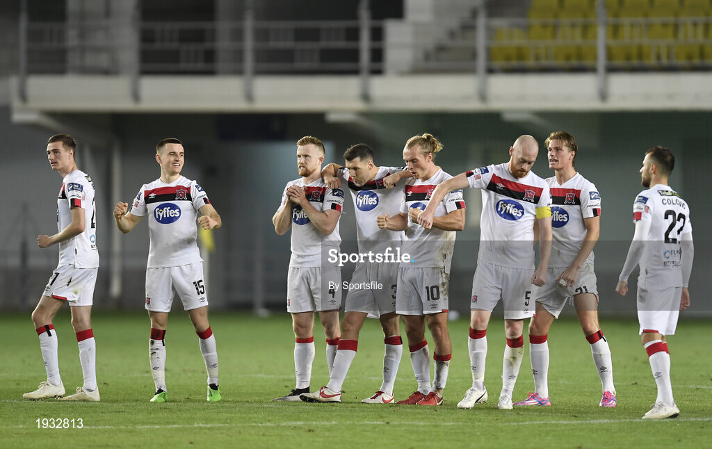 24 September 2020; Dundalk players during the penalty shoot out during the UEFA Europa League Third Qualifying Round match between FC Sheriff Tiraspol and Dundalk at the Stadionul Sheriff in Tiraspol, Moldova. Photo by Alex Nicodim/Sportsfile