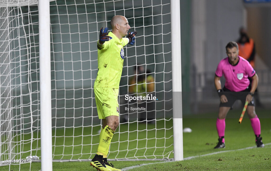 24 September 2020; Gary Rogers of Dundalk during the penalty shoot out during the UEFA Europa League Third Qualifying Round match between FC Sheriff Tiraspol and Dundalk at the Stadionul Sheriff in Tiraspol, Moldova. Photo by Alex Nicodim/Sportsfile