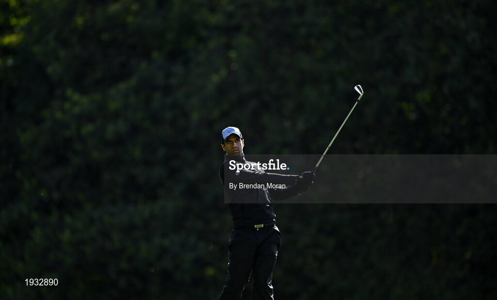25 September 2020; Aaron Rai of England watches his second shot to the sixth green during day two of the Dubai Duty Free Irish Open Golf Championship at Galgorm Spa & Golf Resort in Ballymena, Antrim. Photo by Brendan Moran/Sportsfile
