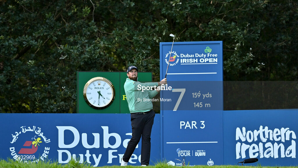 25 September 2020; Shane Lowry of Ireland watches his tee shot from the seventh tee box during day two of the Dubai Duty Free Irish Open Golf Championship at Galgorm Spa & Golf Resort in Ballymena, Antrim. Photo by Brendan Moran/Sportsfile
