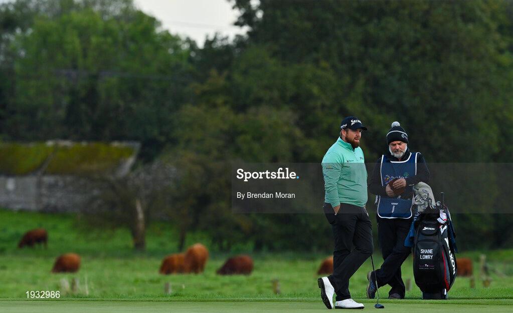 25 September 2020; Shane Lowry of Ireland and his caddie Brian Martin wait on the 13th green during day two of the Dubai Duty Free Irish Open Golf Championship at Galgorm Spa & Golf Resort in Ballymena, Antrim. Photo by Brendan Moran/Sportsfile