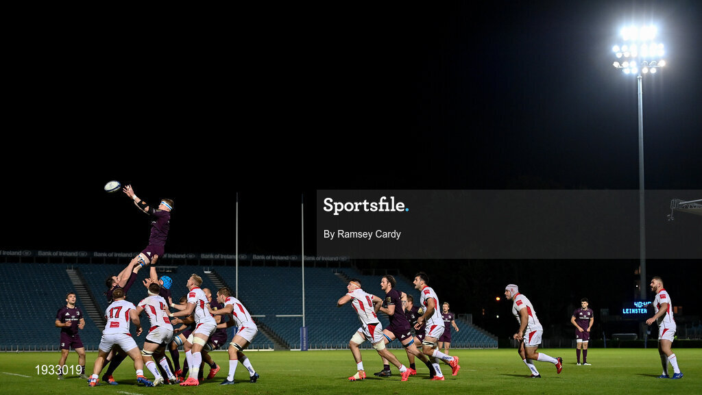 25 September 2020; Sean O’Brien of Leinster A wins possession in the lineout during the A Interprovincial Friendly match between Leinster A and Ulster A at the RDS Arena in Dublin. Photo by Ramsey Cardy/Sportsfile