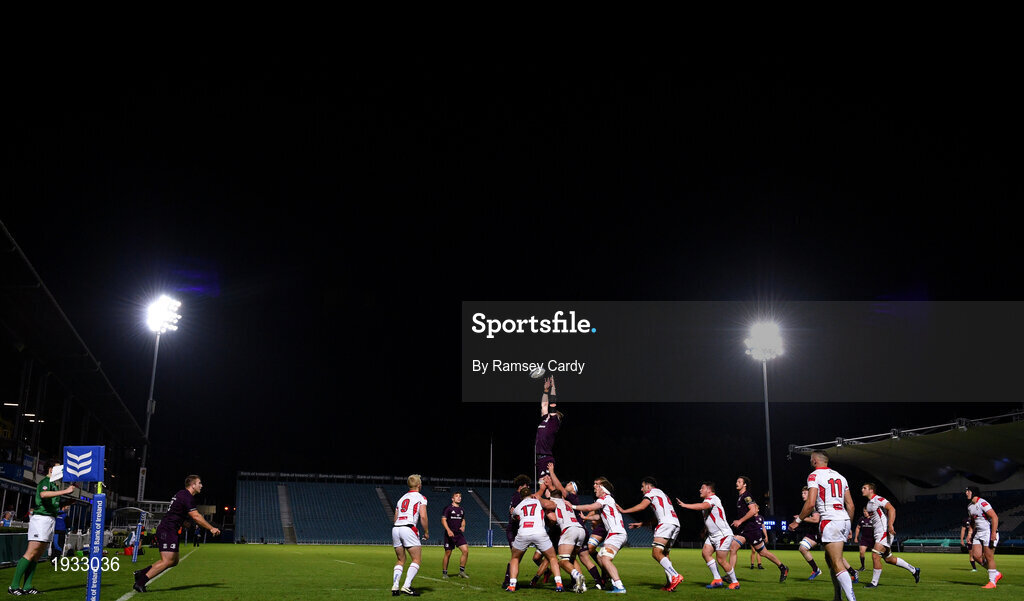 25 September 2020; Sean O’Brien of Leinster A wins possession in the lineout during the A Interprovincial Friendly match between Leinster A and Ulster A at the RDS Arena in Dublin. Photo by Ramsey Cardy/Sportsfile
