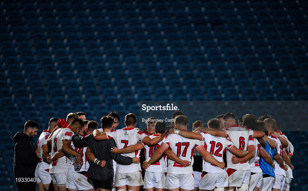 25 September 2020; The Ulster A team huddle following their victory in the A Interprovincial Friendly match between Leinster A and Ulster A at the RDS Arena in Dublin. Photo by Ramsey Cardy/Sportsfile