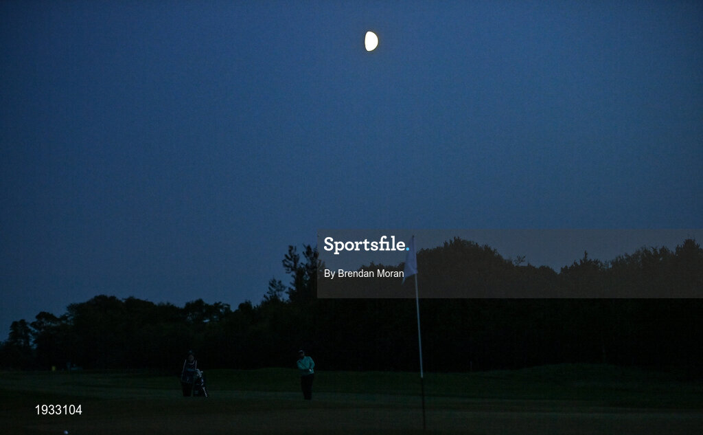 25 September 2020; Shane Lowry of Ireland chips onto 18th green under a rising moon and fading light during day two of the Dubai Duty Free Irish Open Golf Championship at Galgorm Spa & Golf Resort in Ballymena, Antrim. Photo by Brendan Moran/Sportsfile