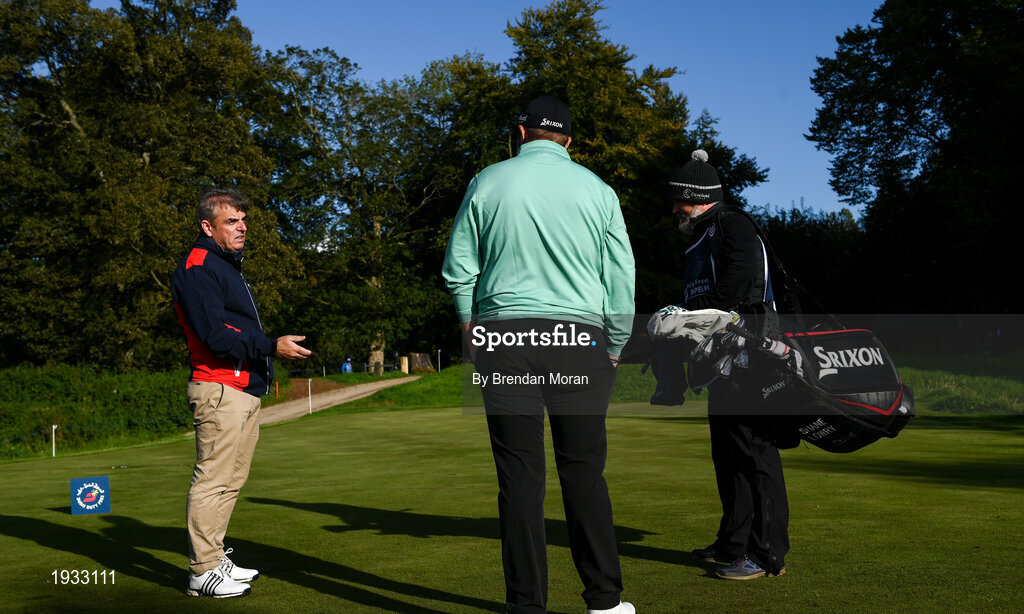 25 September 2020; Paul McGinley chats to Shane Lowry of Ireland on the 8th teebox during day two of the Dubai Duty Free Irish Open Golf Championship at Galgorm Spa & Golf Resort in Ballymena, Antrim. Photo by Brendan Moran/Sportsfile