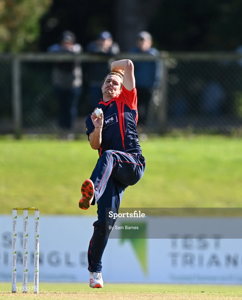 26 September 2020; Mark Adair of Northern Knights bowls during the Test Triangle Inter-Provincial Series 50 over match between Leinster Lightning and Northern Knights at Malahide Cricket Club in Dublin. Photo by Sam Barnes/Sportsfile