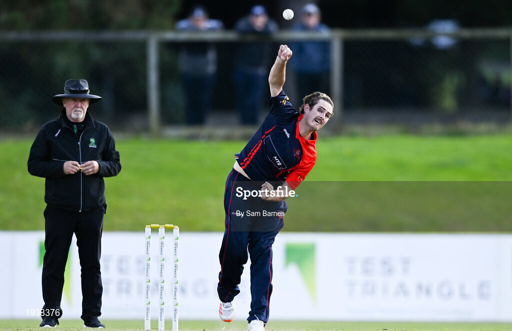 26 September 2020; Mark Adair of Northern Knights bowls during the Test Triangle Inter-Provincial Series 50 over match between Leinster Lightning and Northern Knights at Malahide Cricket Club in Dublin. Photo by Sam Barnes/Sportsfile