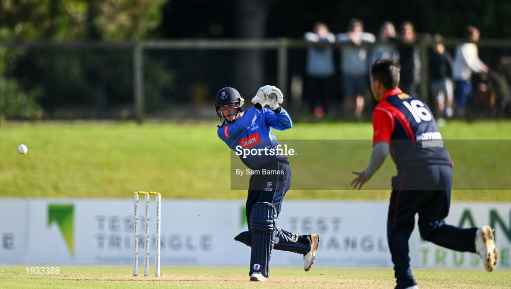 26 September 2020; Stephen Doheny of Leinster Lightning plays a shot during the Test Triangle Inter-Provincial Series 50 over match between Leinster Lightning and Northern Knights at Malahide Cricket Club in Dublin. Photo by Sam Barnes/Sportsfile