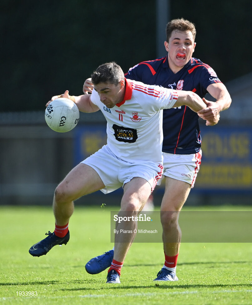 27 September 2020; Paddy Andrews of St Brigid's in action against Diarmuid O'Floinn of Cuala during the Dublin County Senior 2 Football Championship Final match between Cuala and St Brigid's at Parnell Park in Dublin. Photo by Piaras Ó Mídheach/Sportsfile