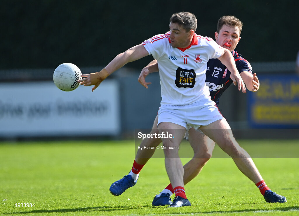 27 September 2020; Paddy Andrews of St Brigid's in action against Diarmuid O'Floinn of Cuala during the Dublin County Senior 2 Football Championship Final match between Cuala and St Brigid's at Parnell Park in Dublin. Photo by Piaras Ó Mídheach/Sportsfile