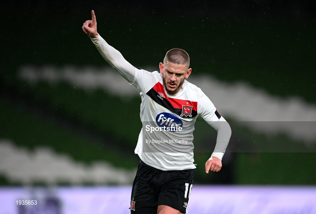 1 October 2020; Sean Murray of Dundalk celebrates scoring his side's first goal during the UEFA Europa League Play-off match between Dundalk and Ki Klaksvik at the Aviva Stadium in Dublin. Photo by Stephen McCarthy/Sportsfile
