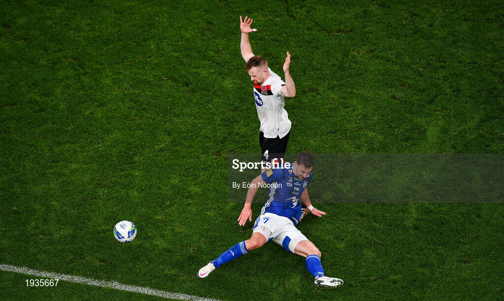 1 October 2020; Sean Hoare of Dundalk in action against Patrik Johannesen of Ki Klaksvik during the UEFA Europa League Play-off match between Dundalk and Ki Klaksvik at the Aviva Stadium in Dublin. Photo by Eóin Noonan/Sportsfile