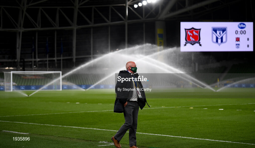 1 October 2020; Fergal Dignam, FAI facilities manager, prior to the UEFA Europa League Play-off match between Dundalk and Ki Klaksvik at the Aviva Stadium in Dublin. Photo by Stephen McCarthy/Sportsfile