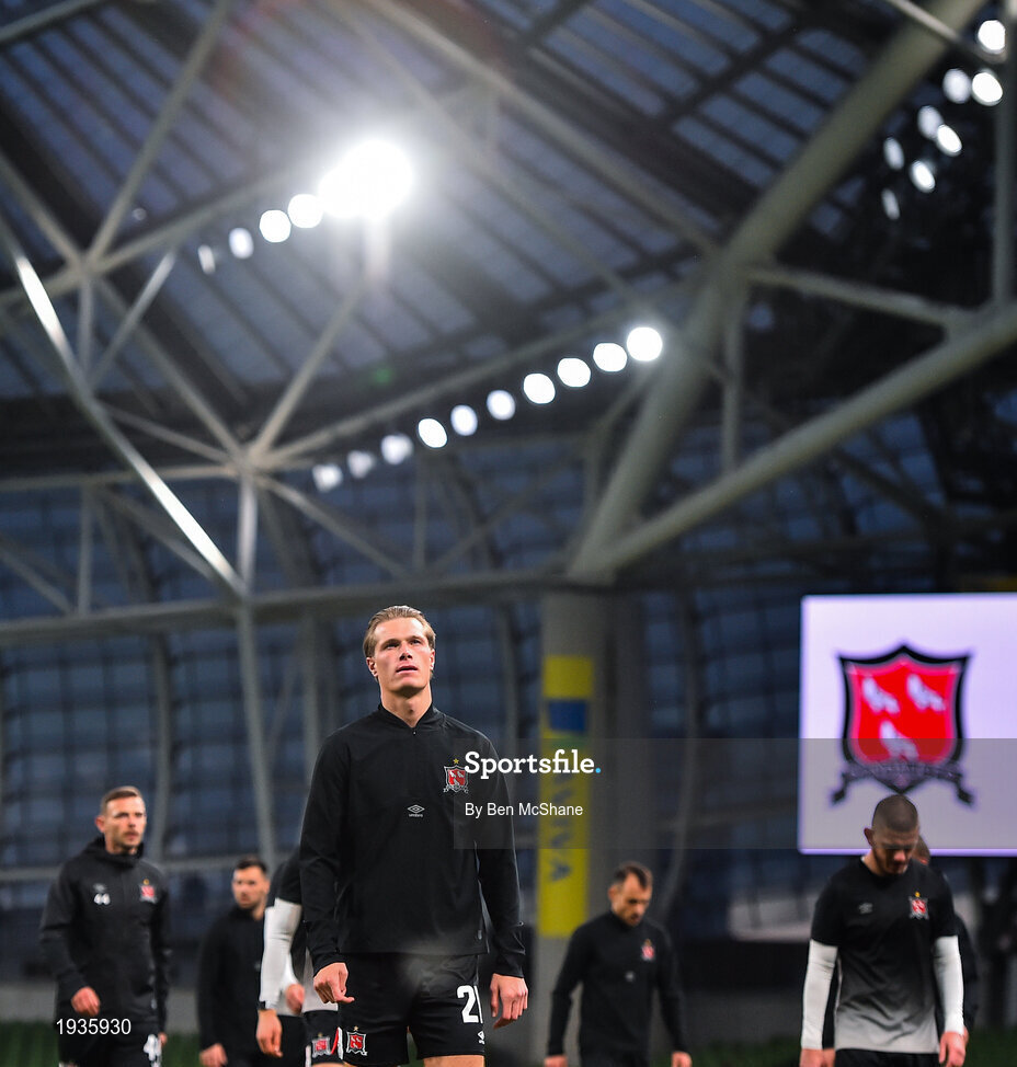 1 October 2020; Daniel Cleary of Dundalk ahead of the UEFA Europa League Play-off match between Dundalk and Ki Klaksvik at the Aviva Stadium in Dublin. Photo by Ben McShane/Sportsfile