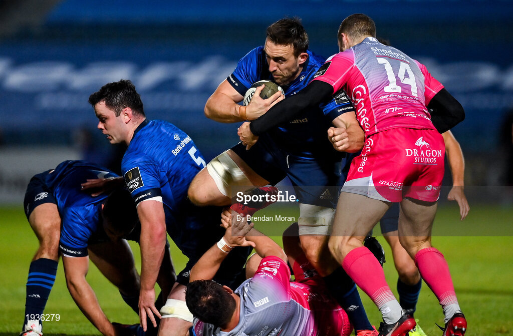 2 October 2020; Jack Conan of Leinster is tackled by Jonah Holmes of Dragons during the Guinness PRO14 match between Leinster and Dragons at the RDS Arena in Dublin. Photo by Brendan Moran/Sportsfile