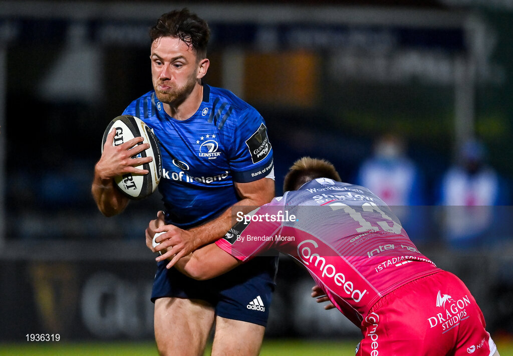 2 October 2020; Hugo Keenan of Leinster is tackled by Nick Tompkins of Dragons during the Guinness PRO14 match between Leinster and Dragons at the RDS Arena in Dublin. Photo by Brendan Moran/Sportsfile