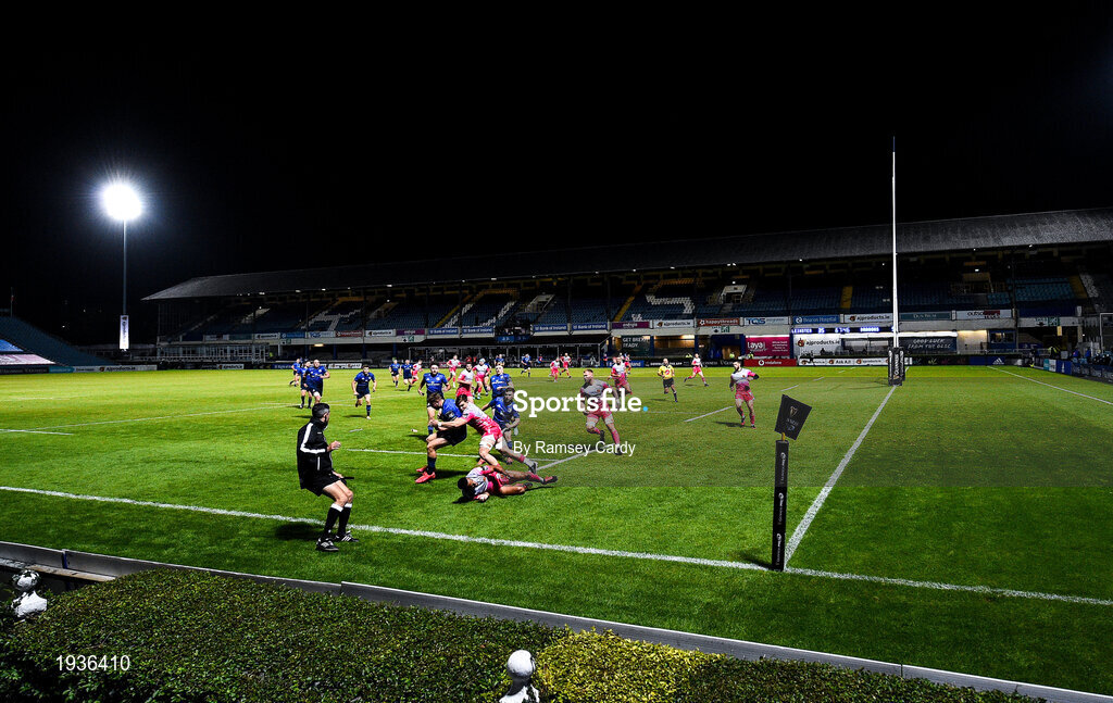 2 October 2020; Jordan Larmour of Leinster is tackled by Josh Lewis of Dragons during the Guinness PRO14 match between Leinster and Dragons at the RDS Arena in Dublin. Photo by Ramsey Cardy/Sportsfile