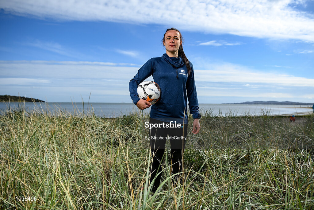 15 October 2020; Aviva Ireland and the FAI have launched a new virtual Aviva Soccer Sisters programme specially designed for girls to take part in during the upcoming October mid-term. The online skills series will be rolled out daily at 10am through the week of 26th October and can be viewed at aviva.ie/soccersisters. Republic of Ireland's Áine O'Gorman during the launch of the Aviva Soccer Sisters Mid-Term Virtual Skills Hub at Sandymount Strand in Dublin. Photo by Stephen McCarthy/Sportsfile