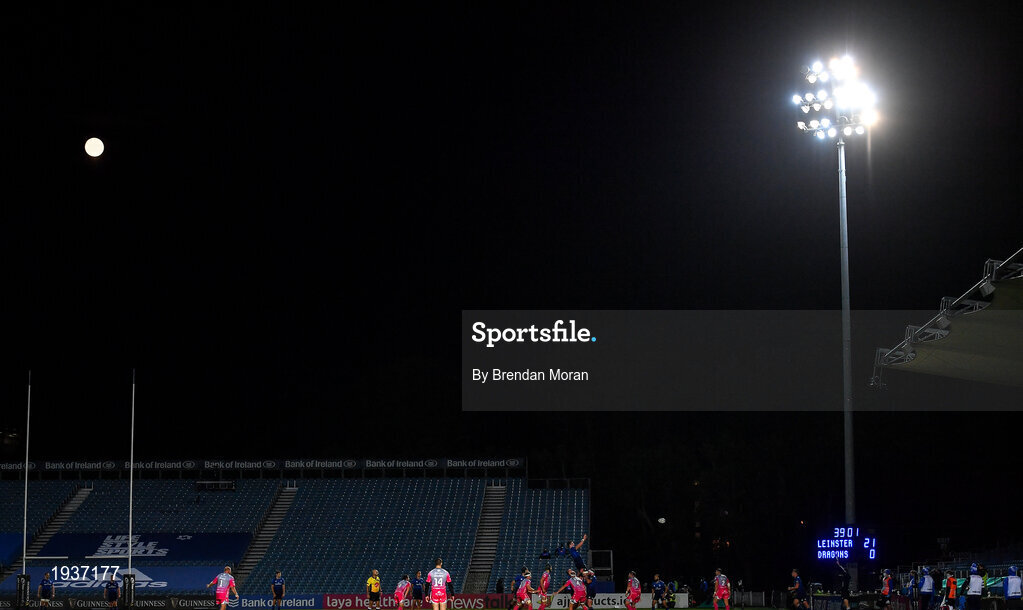 2 October 2020; James Ryan of Leinster takes a lineout in front of empty stands during the Guinness PRO14 match between Leinster and Dragons at the RDS Arena in Dublin. Photo by Brendan Moran/Sportsfile