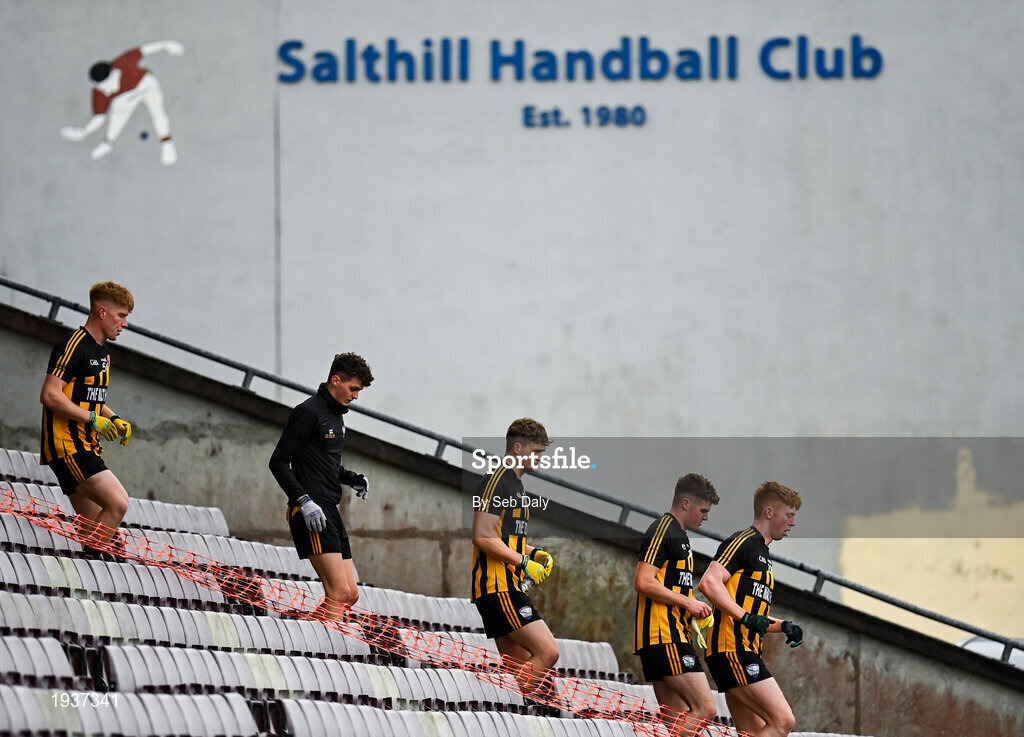 4 October 2020; Mountbellew-Moylough players make their way to the field prior to the Galway County Senior Football Championship Final match between Moycullen and Mountbellew-Moylough at Pearse Stadium in Galway. Photo by Seb Daly/Sportsfile