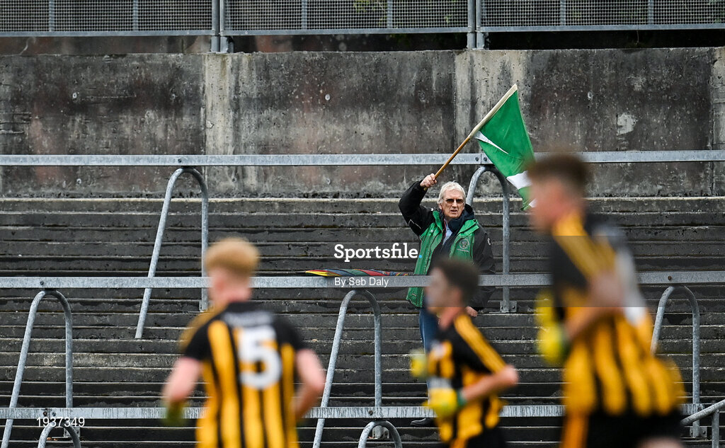 4 October 2020; A Moycullen supporter cheers on his side from the terrace during the Galway County Senior Football Championship Final match between Moycullen and Mountbellew-Moylough at Pearse Stadium in Galway. Photo by Seb Daly/Sportsfile