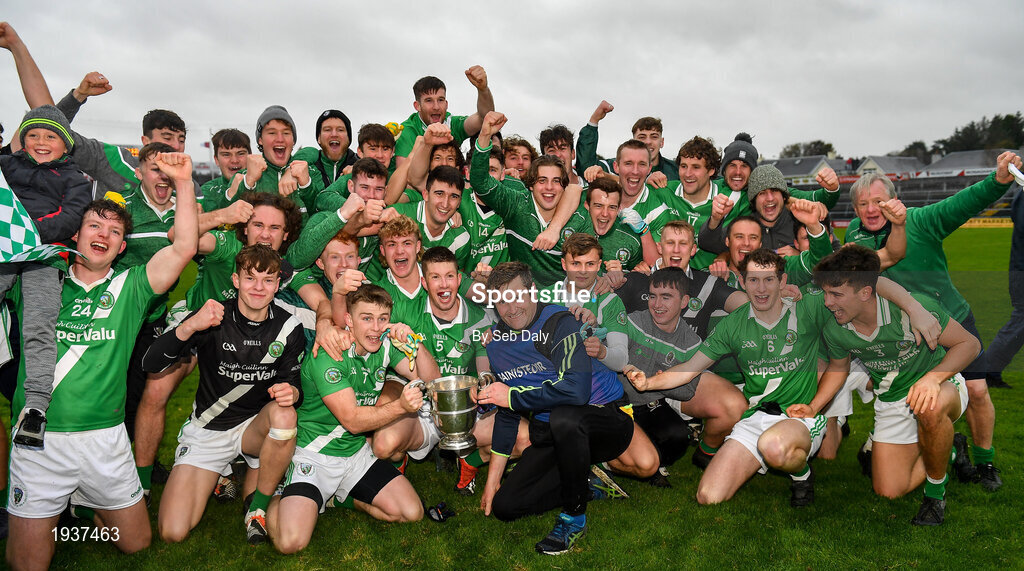 4 October 2020; Moycullen players and management celebrate following their side's victory in the Galway County Senior Football Championship Final match between Moycullen and Mountbellew-Moylough at Pearse Stadium in Galway. Photo by Seb Daly/Sportsfile