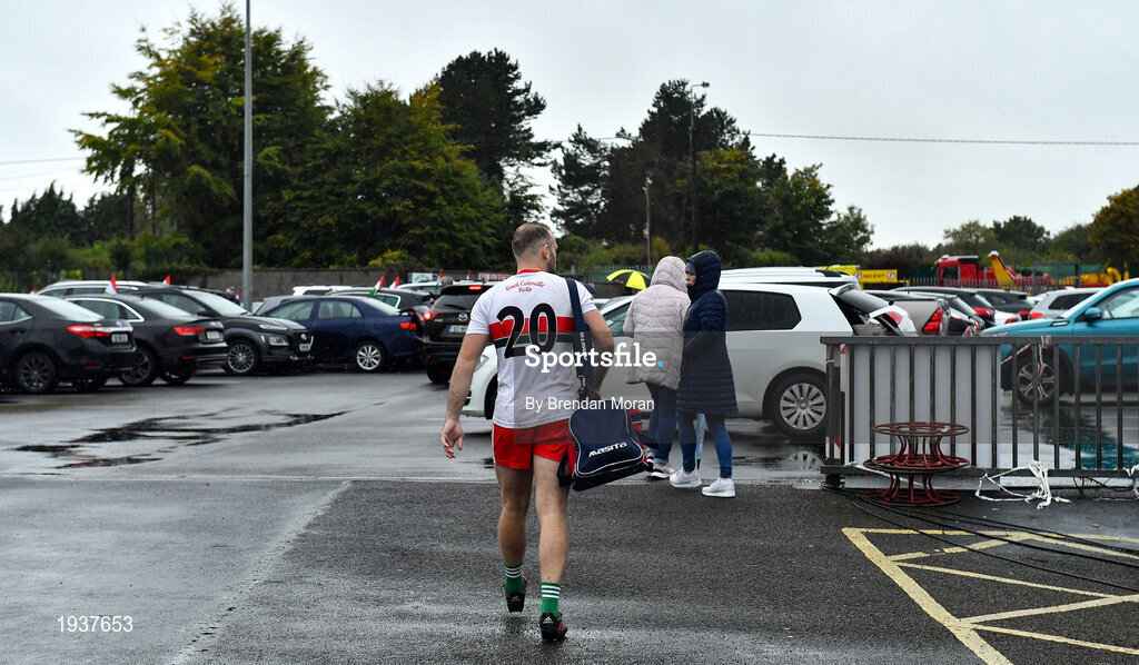 4 October 2020; Jordan Muldoon of Gaeil Colmcille makes his way to his car before heading home after the Meath County Senior Football Championship Final match between Ratoath and Gaeil Colmcille at Páirc Táilteann in Navan, Meath. Photo by Brendan Moran/Sportsfile