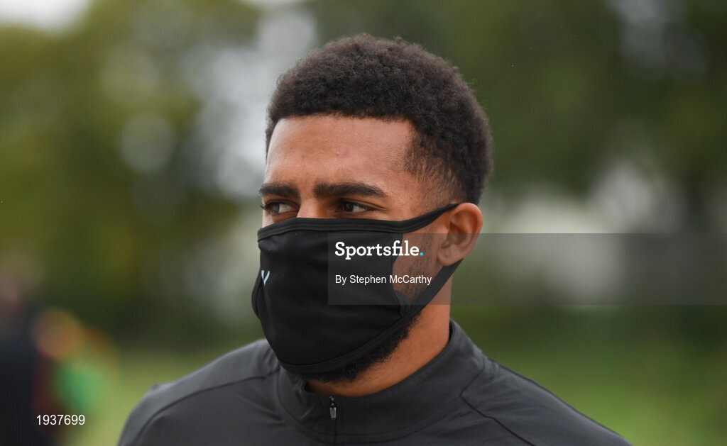 5 October 2020; Cyrus Christie arrives for an activation session prior to a Republic of Ireland training session at the Sport Ireland National Indoor Arena in Dublin. Photo by Stephen McCarthy/Sportsfile