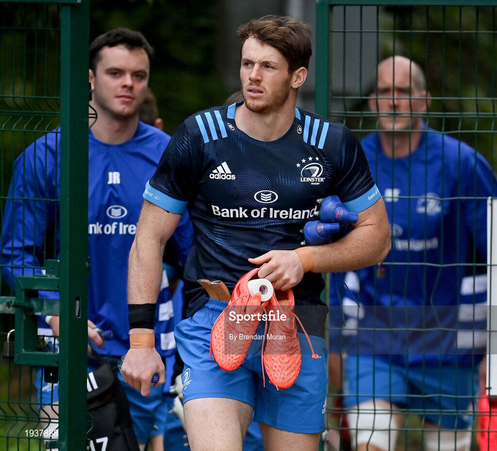 6 October 2020; Ryan Baird is followed by James Ryan, left, and Devin Toner on arrival at Leinster Rugby squad training at UCD in Dublin. Photo by Brendan Moran/Sportsfile