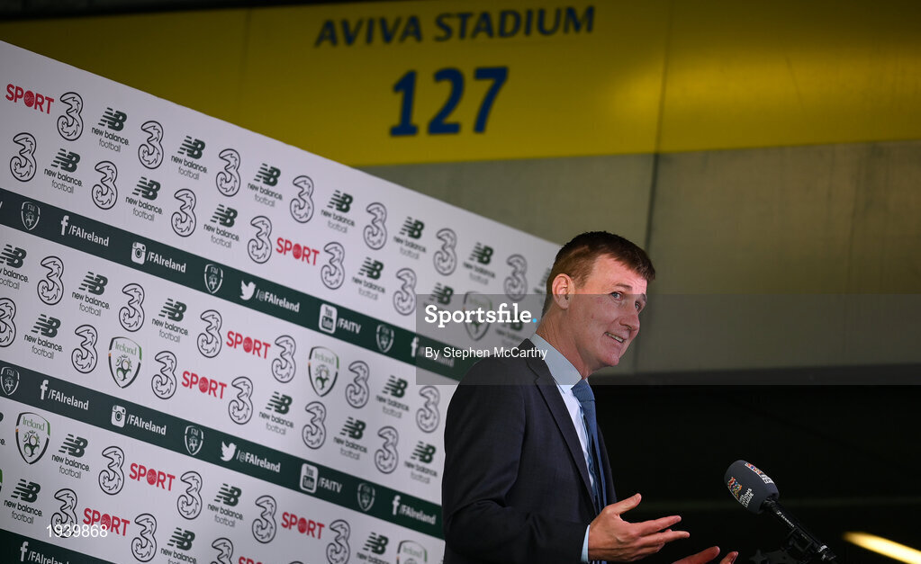 11 October 2020; Republic of Ireland manager Stephen Kenny is interviewed ahead of the UEFA Nations League B match between Republic of Ireland and Wales at the Aviva Stadium in Dublin. Photo by Stephen McCarthy/Sportsfile