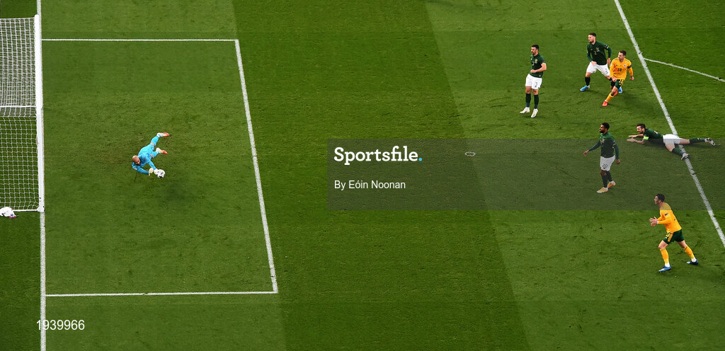 11 October 2020; Darren Randolph of Republic of Ireland saves a shot from Aaron Ramsey of Wales during the UEFA Nations League B match between Republic of Ireland and Wales at the Aviva Stadium in Dublin. Photo by Eóin Noonan/Sportsfile
