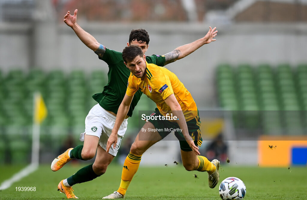 11 October 2020; Ben Davies of Wales in action against Robbie Brady of Republic of Ireland during the UEFA Nations League B match between Republic of Ireland and Wales at the Aviva Stadium in Dublin. Photo by Stephen McCarthy/Sportsfile