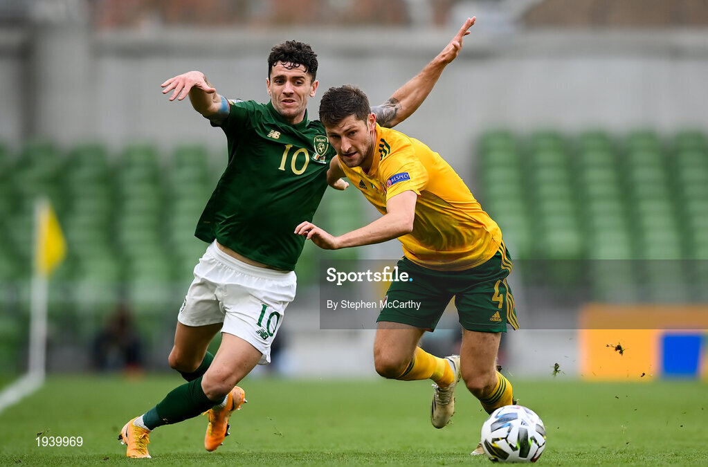 11 October 2020; Ben Davies of Wales in action against Robbie Brady of Republic of Ireland during the UEFA Nations League B match between Republic of Ireland and Wales at the Aviva Stadium in Dublin. Photo by Stephen McCarthy/Sportsfile