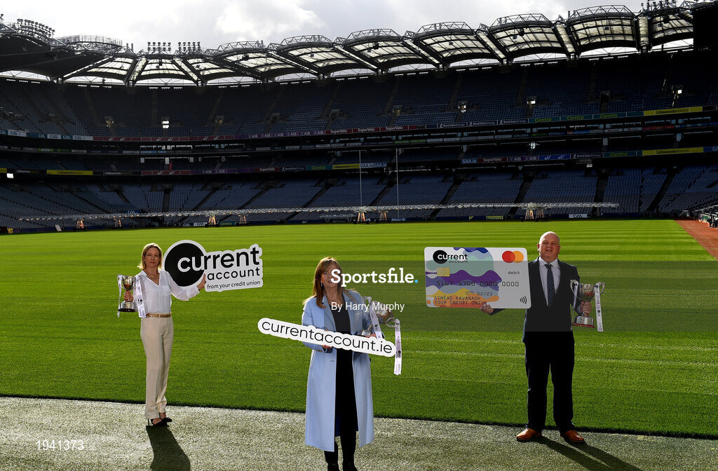 15 October 2020; currentaccount.ie are the new title sponsors of the All-Ireland Ladies Club Football Championships. currentaccount.ie will also sponsor the LGFA All-Ireland Club 7s and the LGFA’s National Volunteer awards. In attendance to mark the new partnership are, from left to right, Kira Magennis, Head of SEPA Payments, Helen O’Rourke, LGFA CEO, and Seamus Newcombe, CEO currentaccount.ie, at Croke Park in Dublin. To find out more about Current Account from your Credit Union, visit https://currentaccount.ie/ Photo by Harry Murphy/Sportsfile