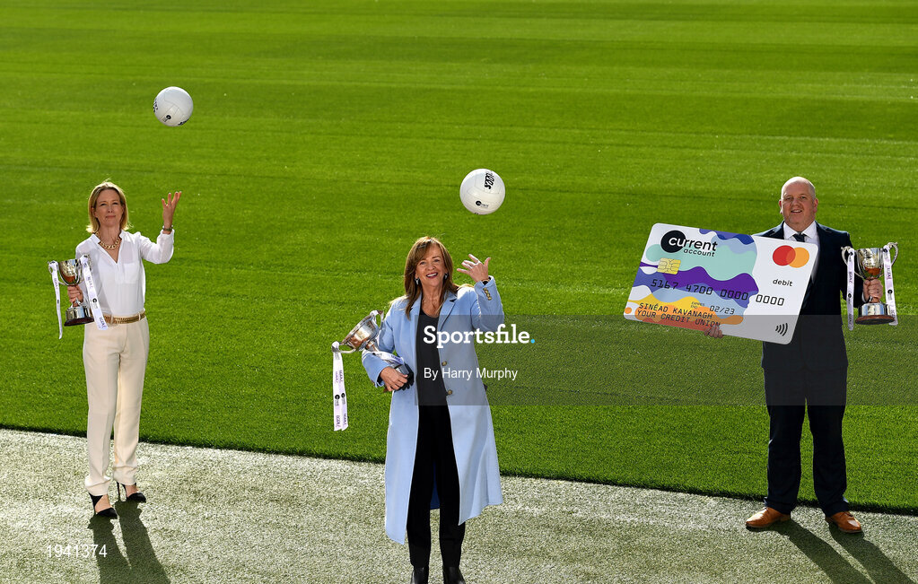 15 October 2020; currentaccount.ie are the new title sponsors of the All-Ireland Ladies Club Football Championships. currentaccount.ie will also sponsor the LGFA All-Ireland Club 7s and the LGFA’s National Volunteer awards. In attendance to mark the new partnership are, from left to right, Kira Magennis, Head of SEPA Payments, Helen O’Rourke, LGFA CEO, and Seamus Newcombe, CEO currentaccount.ie, at Croke Park in Dublin. To find out more about Current Account from your Credit Union, visit https://currentaccount.ie/ Photo by Harry Murphy/Sportsfile
