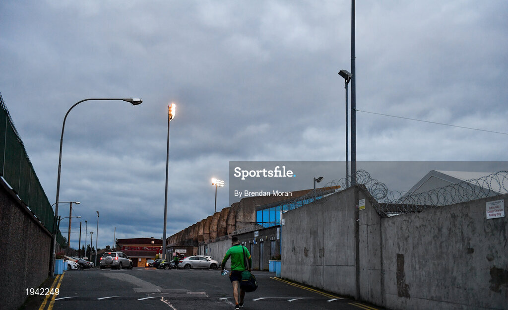 17 October 2020; A Meath player walks to the stadium prior to the Allianz Football League Division 1 Round 6 match between Dublin and Meath at Parnell Park in Dublin. Photo by Brendan Moran/Sportsfile