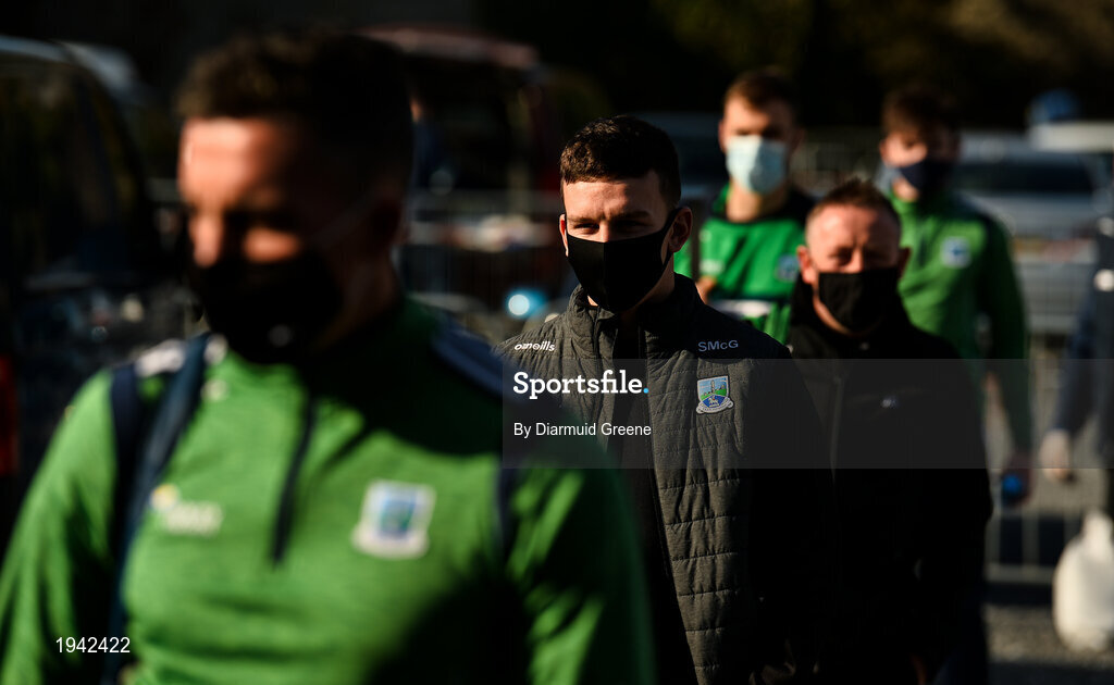 18 October 2020; Stephen McGullion of Fermanagh arrives along with team-mates for the Allianz Football League Division 2 Round 6 match between Clare and Fermanagh at Cusack Park in Ennis, Clare. Photo by Diarmuid Greene/Sportsfile