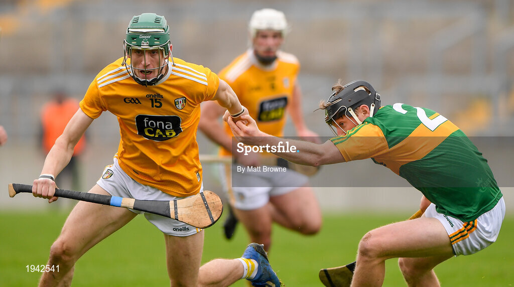 18 October 2020; James McNaughton of Antrim in action against James O'Connor of Kerry during the Allianz Hurling League Division 2A Final match between Antrim and Kerry at Bord na Mona O'Connor Park in Tullamore, Offaly. Photo by Matt Browne/Sportsfile
